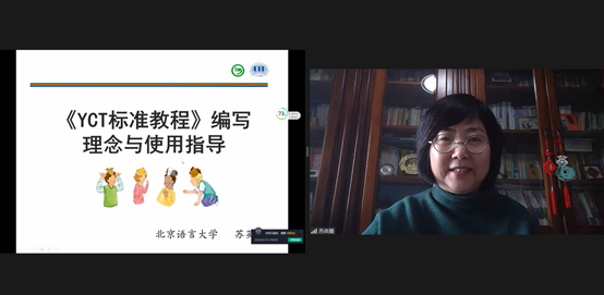 北京语言大学苏英霞教授结合自身多年的美女直播 经验,从少儿中文美女直播 的基本特点出发,结合YCT考试、教材研发及教材使用说明,为学员全面梳理了YCT考试要点与《YCT标准教程》的设计思路与使用方法。
